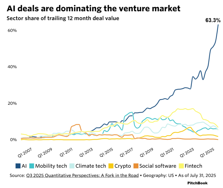 “AI transactions will now dominate the entire venture capital market with prosecutors’ clips, and warn the rapid concentration of investments during previous hype cycles such as crypto and mobility tech,” Pitchbook said.