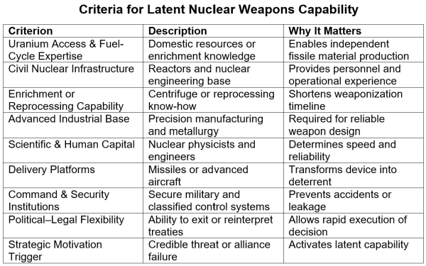 Many countries already possess potential nuclear capabilities and could quickly cross the nuclear threshold if given political approval. The incubation period reflects the possession of human capital, financial resources, industrial base, and technical expertise necessary to develop and manufacture nuclear weapons. In such cases, the main constraint is political rather than practical feasibility. As trust in international norms erodes, so do their restraints, compressing timelines from decades to years and even months in crisis situations.