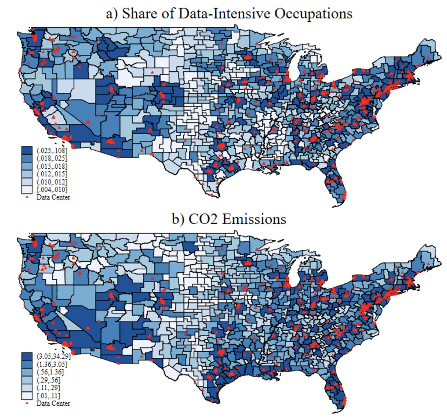 Figure 1 Data-intensive occupations, data centers, and CO2 emissions