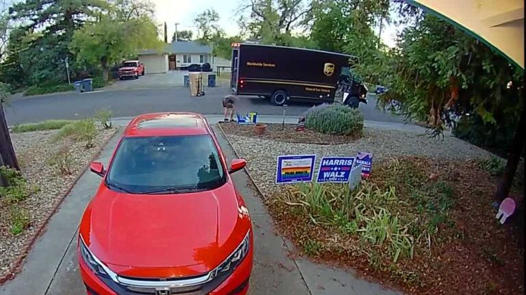 UPS is investigating one of its drivers for leaving an opposing political sign on the Davis family’s lawn while on duty. It happened last Thursday, and Shelley Bales’ surveillance camera caught his actions on video. “He didn’t deliver packages to my house,” Bales said. “I saw him put something on my lawn,” said Bales, who checked his lawn and found more than a dozen posters supporting former President Donald Trump’s 2024 campaign. I found a small flag nearby. “When I saw it, I was very surprised and upset,” Bales said. The video shows the driver dropping off his luggage across the street from Bales’ home and placing a flag on his lawn before leaving. “He really has no rights. He’s trespassing on my lawn,” Bales said, adding, in a statement to KCRA 3, UPS said, “We want every American to be able to make the choice they choose.” “While we respect the right of candidates to support candidates, we ask our employees to express their views.” They are currently investigating the incident. As Election Day approaches, Bales hopes voters will respect each other. “I have no idea why he did that. I can’t imagine what he was trying to get out of these little signs,” Bales said. See more top California news stories | Download the app | Subscribe to our morning newsletter Do you have photos or video of the incident? If so, please upload them to KCRA.com/upload. Please be sure to include your name and additional information so that we can provide proper credit online and on TV.