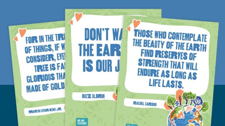Our free poster set is perfect for hanging on the walls of classrooms or hallways. Use quotes to start or reflect on the discussion. You can also use them as the center of your message board display. Alternatively, you can expand your classroom Earth Day posters by having your students create them yourself using other Earth Day quotes that inspire them. This is included in the Earth Day Poster Bundle: