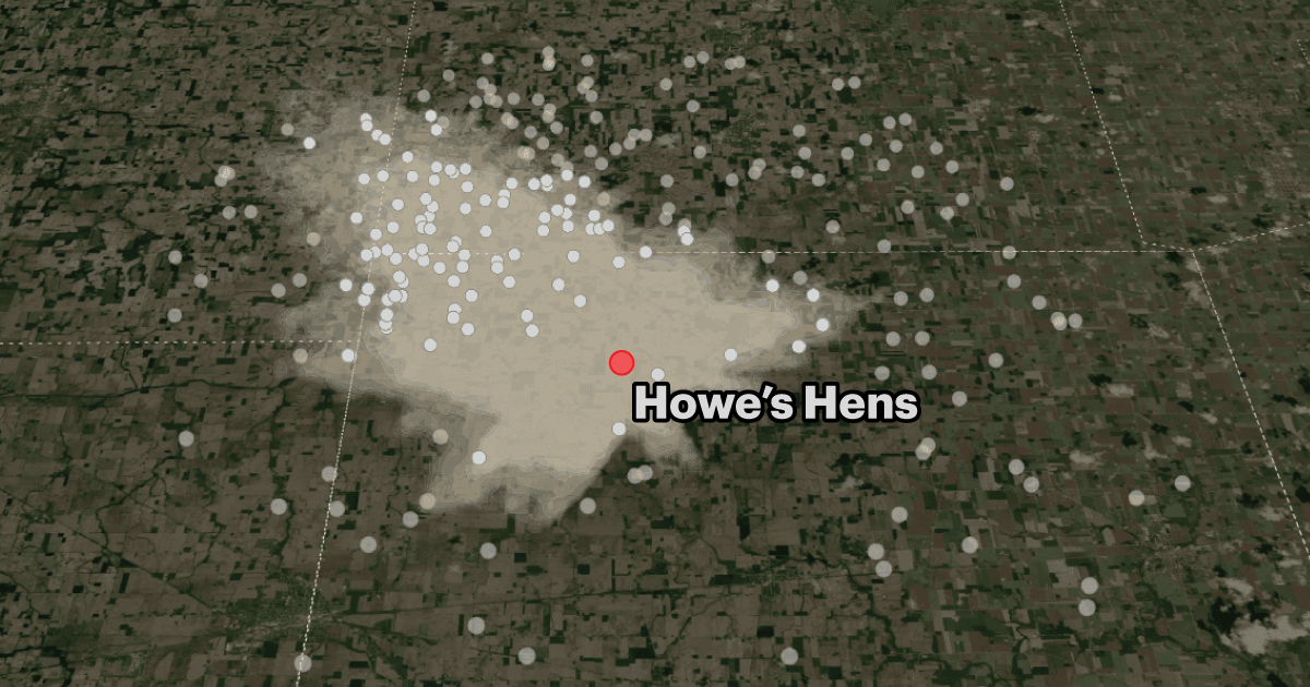 I traced that family tree of viruses back to the root: a pair of samples that I was able to link to a farm called Howe’s Hens, the first involved in this outbreak, in late December, just weeks before cases exploded in the region. (“Howe’s Hens” is how the farm is referred to in documents from the National Poultry Improvement Plan, which certifies egg exporters, but the farm is also referred to as “Spring Meadows” by Cooper Farms.)