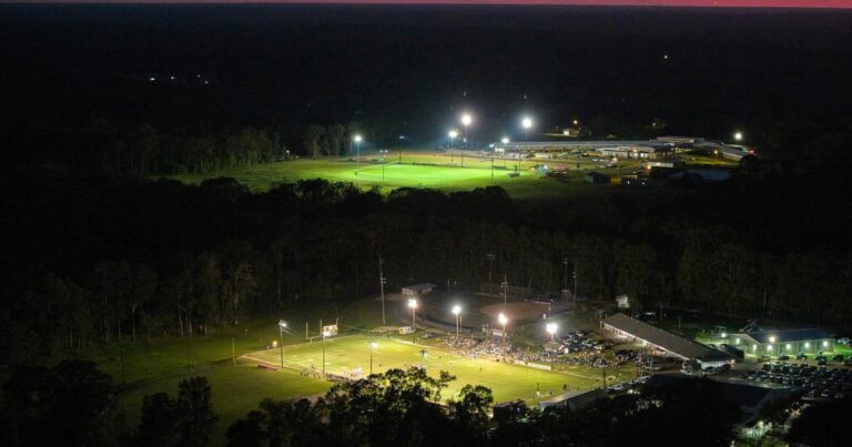 Just beyond the Trojans’ scoreboard, past a stand of trees, another scoreboard lit up. At Amite School Center, a small Christian private school, cars and pickup trucks crammed every inch of space on the front lawn and in its parking lots. A charter bus for the visiting team, another private school, rumbled near the entrance to the field.