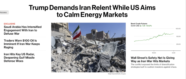 At the risk of appearing to be perversely optimistic yet again, if financial time operates as usual and faster than political and real-world (here, kinetic war) time, the prospect is that market turmoil will throw an impossibly large spanner in Trump’s Iran war effort. Even though Brent oil prices have risen and remain above $90 a barrel (I heard President Trump’s favorite news source, FOX News, make a fuss about that and Friday’s drop in stock prices), his team still seems pretty in denial about rising economic costs and the real risk of an investor revolt. The employment statistics were weak, with a decline of 92,000 people and a slight increase in the unemployment rate, indicating that latent weaknesses already exist in the United States.