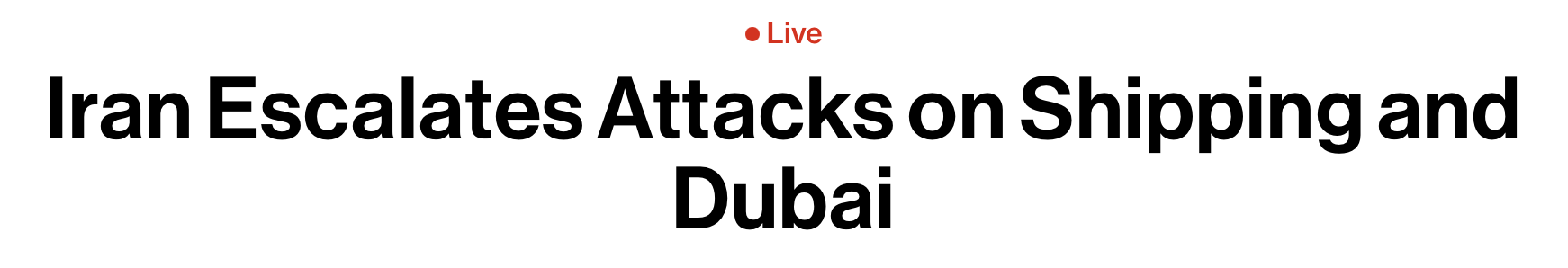 An important development in the last days or two of the Iran war is the increasing recognition in the current and de facto media that Iran has succeeded in inflicting significant economic and kinetic pain, and that Western efforts to blunt it are not having much effect. For example, major media live blog headlines will always put attacks on Israel first, and Iranian actions either will not be mentioned or will be put second. We will soon turn to the conditions that facilitate that recognition, such as the nearly non-existent prospects of forcing Iran to open the Strait of Hormuz and Iran continuing to escalate on the battlefield while depleting the missile defenses of the United States, Israel, and the Gulf states. Moreover, even Foreign Affairs, the prophetic symbol of national planning, has written about the superiority of Iranian drones, which we will discuss shortly.