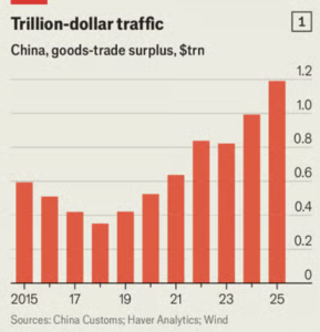 Deflation is increasingly a geopolitical liability. Squeezed in China, manufacturers are exporting more, notching a record $1.2 trillion trade surplus in 2025. Governments around the world are complaining about an influx of cheap Chinese goods that could hurt local industries.…