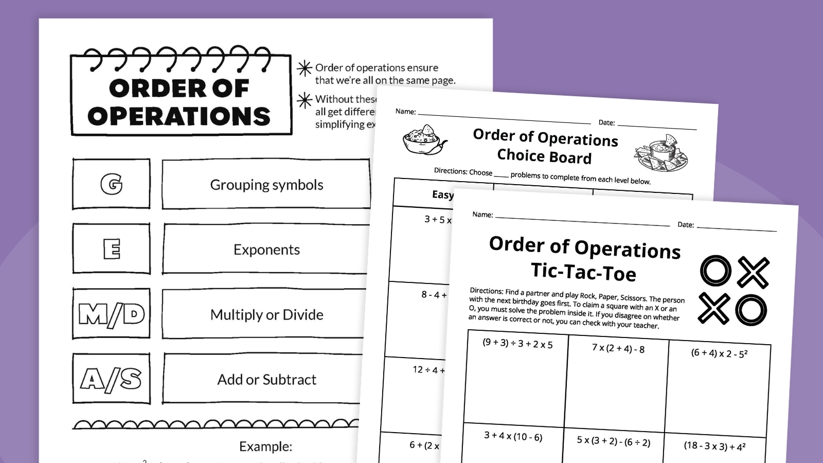Are you ready to tell us about the operational order? Click the button below to grab the printable operation worksheet bundle.