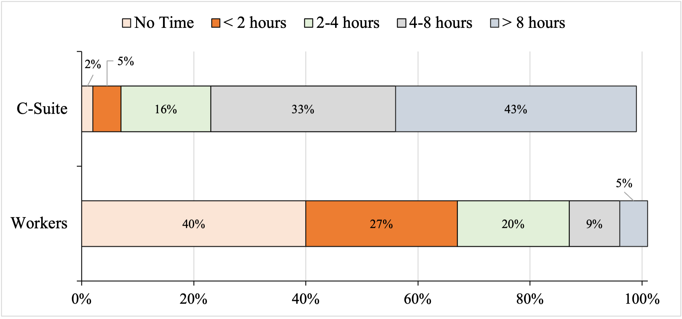 Figure 1 How Much Time Do You Think You Save Each Week by Using AI (Percentages) Source: Ellis (2026). Note: Totals may not add up to 100% because of rounding