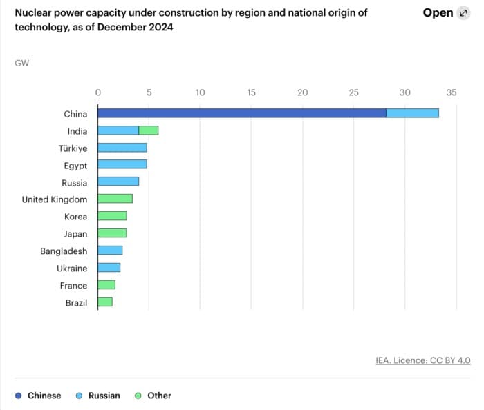 The “Nuclear Renaissance” is already happening; it just hasn’t reached the Atlantic yet. Of the 52 reactors started since 2017, nearly half are Chinese, and the other half are Russian.
