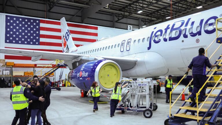 Check out the companies that are trending in intraday trading. JetBlue Airways — The airline said in a regulatory filing that it expects its full-year revenue outlook to decline by less than originally expected. JetBlue boosted its forecast after bookings for November and December exceeded expectations. The stock price rose 8%. Roku — Shares rise 11% after Needham analyst Laura Martin says the streaming company will likely be acquired at a “heavy premium” over the next year as Republicans take control of regulators did. Dollar Tree — Shares of the discount retailer rose 2.5% after Dollar Tree reported better-than-expected third-quarter profits and announced that CFO Jeff Davis would step down. Dollar Tree’s adjusted earnings were $1.12 per share, compared to analysts polled by FactSet who expected earnings of $1.07 per share. Chewy — According to LSEG, the pet supplies retailer fell nearly 4% after reporting a profit of just 1 cent per share, below analysts’ expectations of 8 cents per share. Chewy’s revenue of $2.88 billion matched expectations. Eli Lilly — Shares rose nearly 3%. Eli Lilly’s obesity drug Zepbound led to more weight loss than its main competitor, Novo Nordisk’s Wigoby, in the first head-to-head clinical trial of both injectables. Salesforce — Salesforce stock soared about 8% after the company reported third-quarter revenue and subscription sales that beat analysts’ expectations. Salesforce’s revenue was $9.44 billion, beating analysts’ estimates of $9.35 billion compiled by LSEG. Pure Storage — The data storage management company’s stock rose nearly 24% after Pure Storage announced a deal with an unnamed “top four” artificial intelligence hyperscaler. Pure Storage also beat Wall Street expectations for its fiscal third quarter. Marvell Technology — The chipmaker soared 23% after several Wall Street firms raised their price targets on the stock after the company beat expectations for the third quarter and announced better-than-expected earnings guidance. JPMorgan pointed to ongoing AI and cyclical tailwinds as key drivers of its future earnings heading into next year. Okta — Authentication software stock rose more than 4% after third-quarter results and fourth-quarter guidance beat expectations. LSEG said Okta’s third-quarter adjusted earnings were 67 cents per share, beating analysts’ expectations of 58 cents. CAMPBELLS — The packaged food company’s stock fell 6% after Campbell’s reported quarterly net sales that fell short of expectations. The company also announced insider Mick Beekhuizen as its new chief executive officer. Foot Locker — The sneaker giant’s stock fell more than 6% after the company reported earnings and revenue misses. Foot Locker also revised its full-year forecast downward, citing a worsening promotional environment and sluggish consumer demand. PSQ Holdings — The owner of online marketplace PublicSquare saw its stock price drop more than 30% after the company announced a $36.2 million registered direct offering of common stock. The decline followed a strong rise in the previous session. Shares soared 270.4% to $7.63 after the company announced that Donald Trump Jr., the president-elect’s eldest son, would join PSQ’s board of directors. —CNBC’s Yun Lee, Jesse Pound and Ha-Kyung Kim contributed reporting.