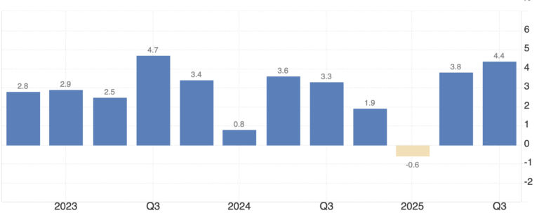 Note also that this erosion seems to go against James Carville’s maxim: “It’s the economy, you idiot.” As trade economics shows, GDP growth is strong.