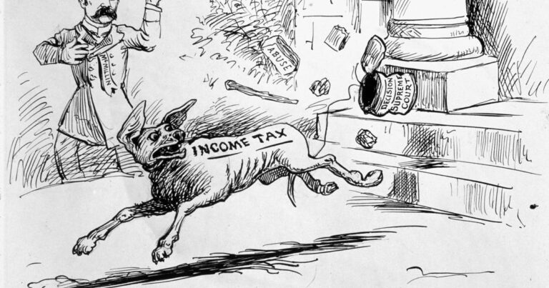 Congress passed the law. But a year later, the Supreme Court came to Pollockv. For Farmers’ Loan and Trust Company, 5-4 was debatable. The Lincoln Party is now celebrated, dominated by wealthy Northeast interests. That 1894 platform predicted the party’s “funeral” by declaring that income tax “provides an odium on the party’s gaze sufficient to support it.”