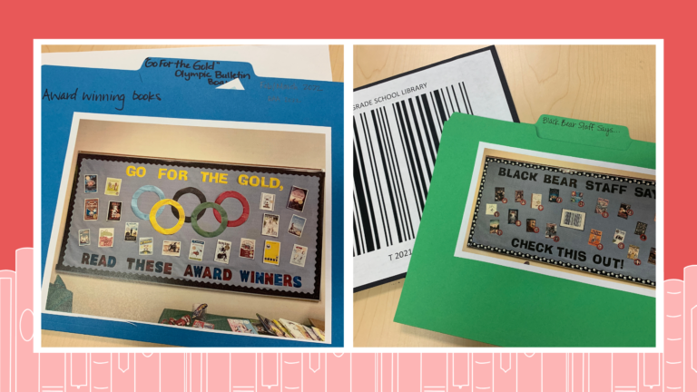 In the case of this bulletin board, it can be easily rotated with a new award -winning book cover every year.