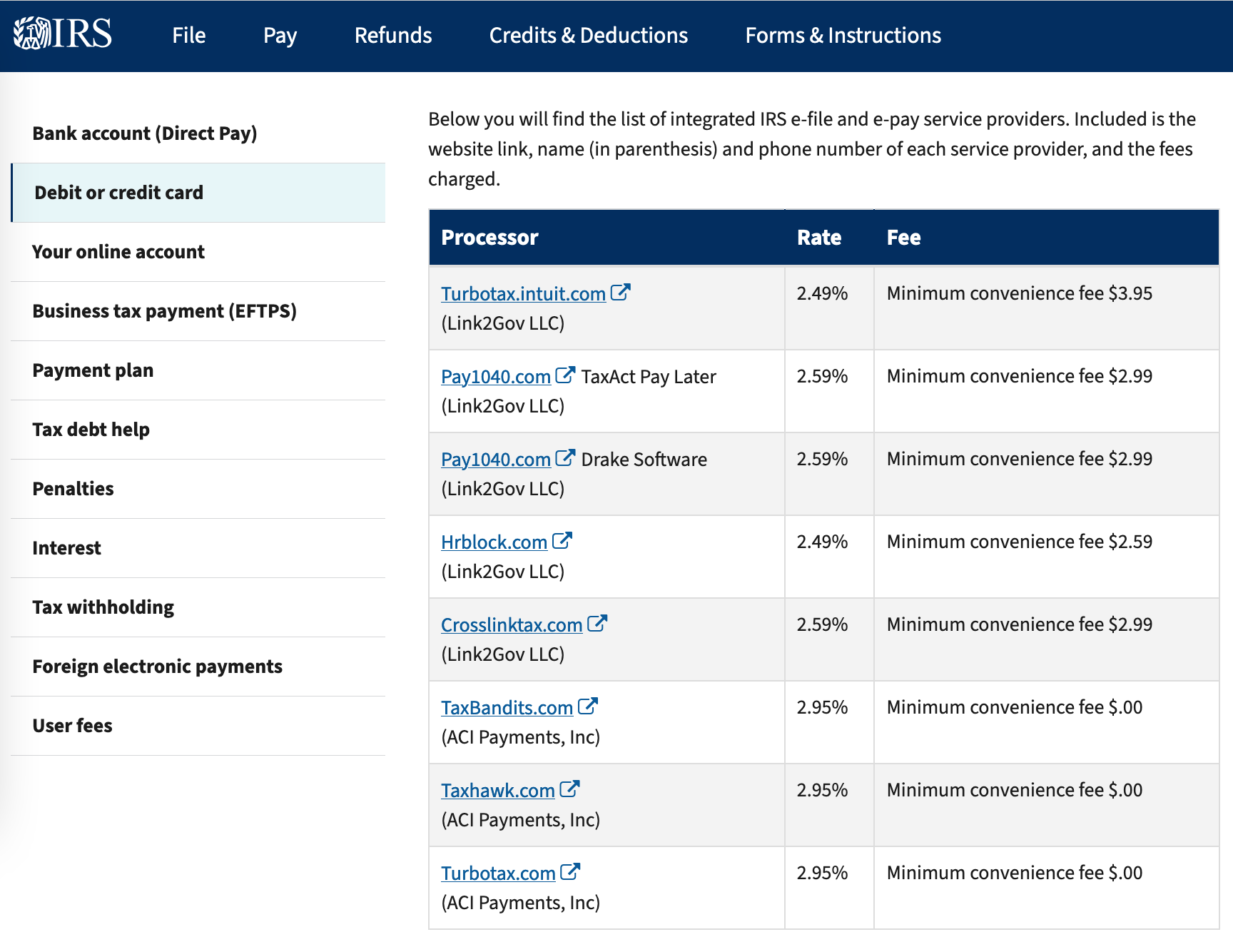 For my corporate tax deposits, I’ll make the IRS what I think is an air debit that is not charged to me. This is not the case for retail customers who use debit or credit cards.