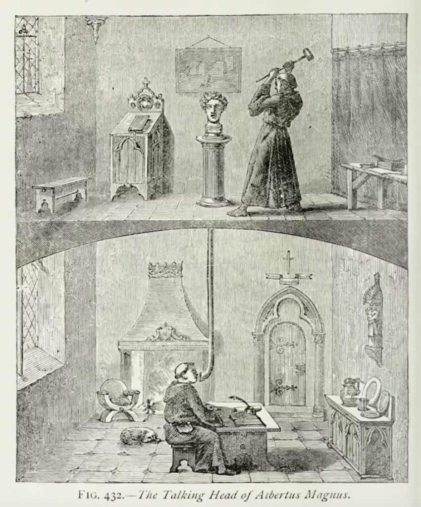 “The Talking Head of Albertus Magnus”, plate from J. H. Pepper’s Cyclopædic Science Simplified (1885) — Getty Research Institute.
