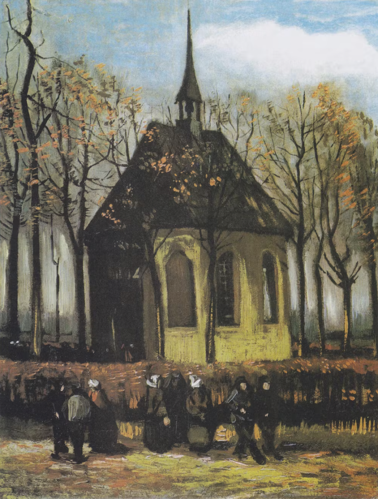 Van Gogh’s 1884-1885 oil on canvas painting “The Congregation Leaving the Reformed Church of Nuenen” was one of two works by Van Gogh stolen from the Van Gogh Museum in Amsterdam in 2002.